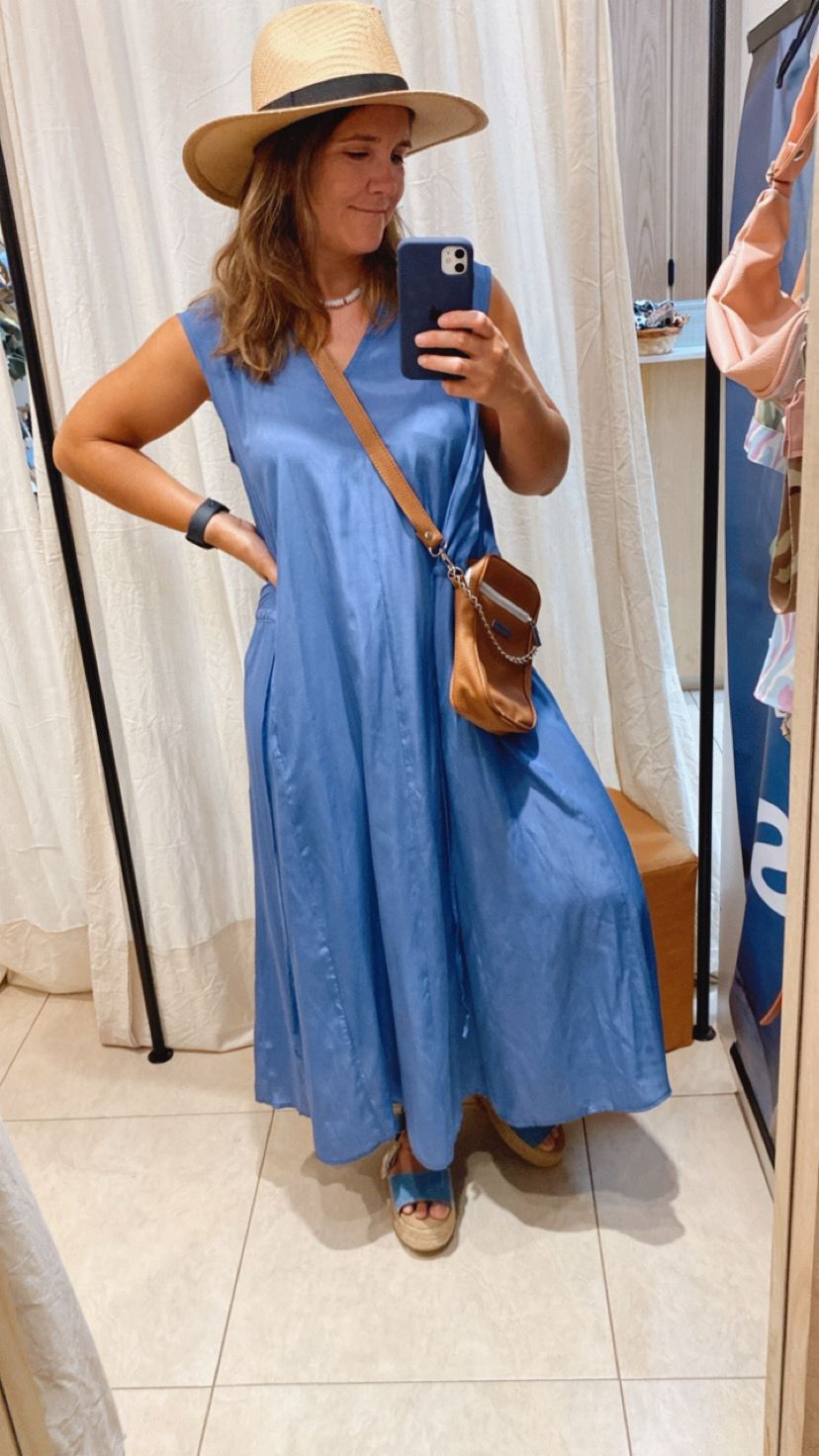 Vestido de seda sin mangas, estilo oversize con lazo en la espalda, talle único equivalente hasta un XL/XXL.
