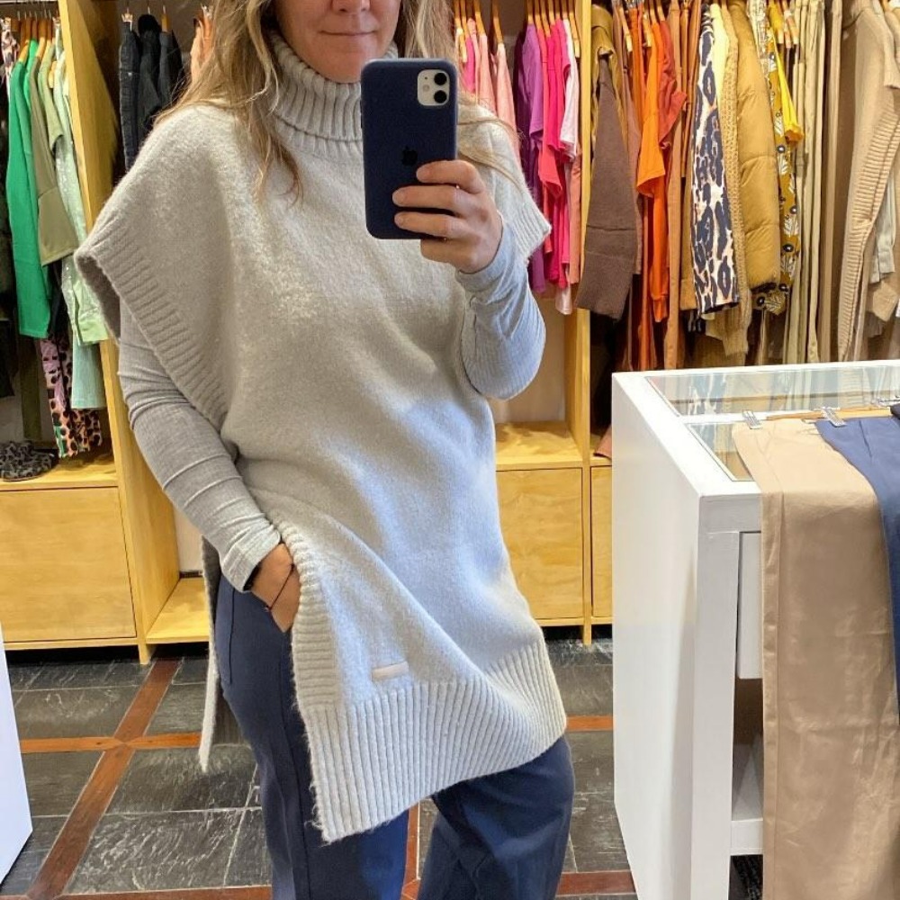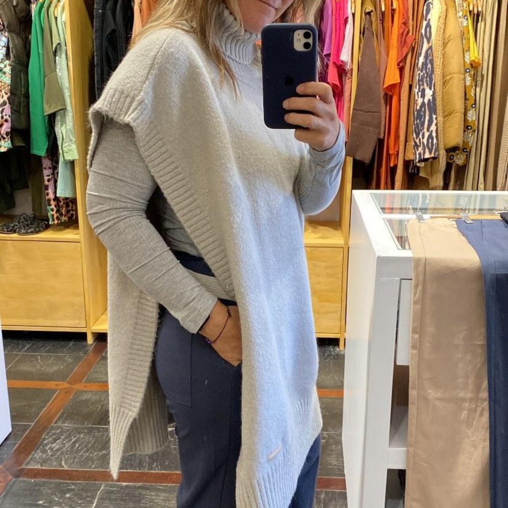Poncho de tejido suave con cuello alto y calce amplio, ideal para sumar abrigo y estilo a tus looks de todos los días. Su diseño con aberturas laterales permite usarlo cómodamente sobre camisas o sweaters livianos. Un básico versátil, moderno y fácil de combinar.