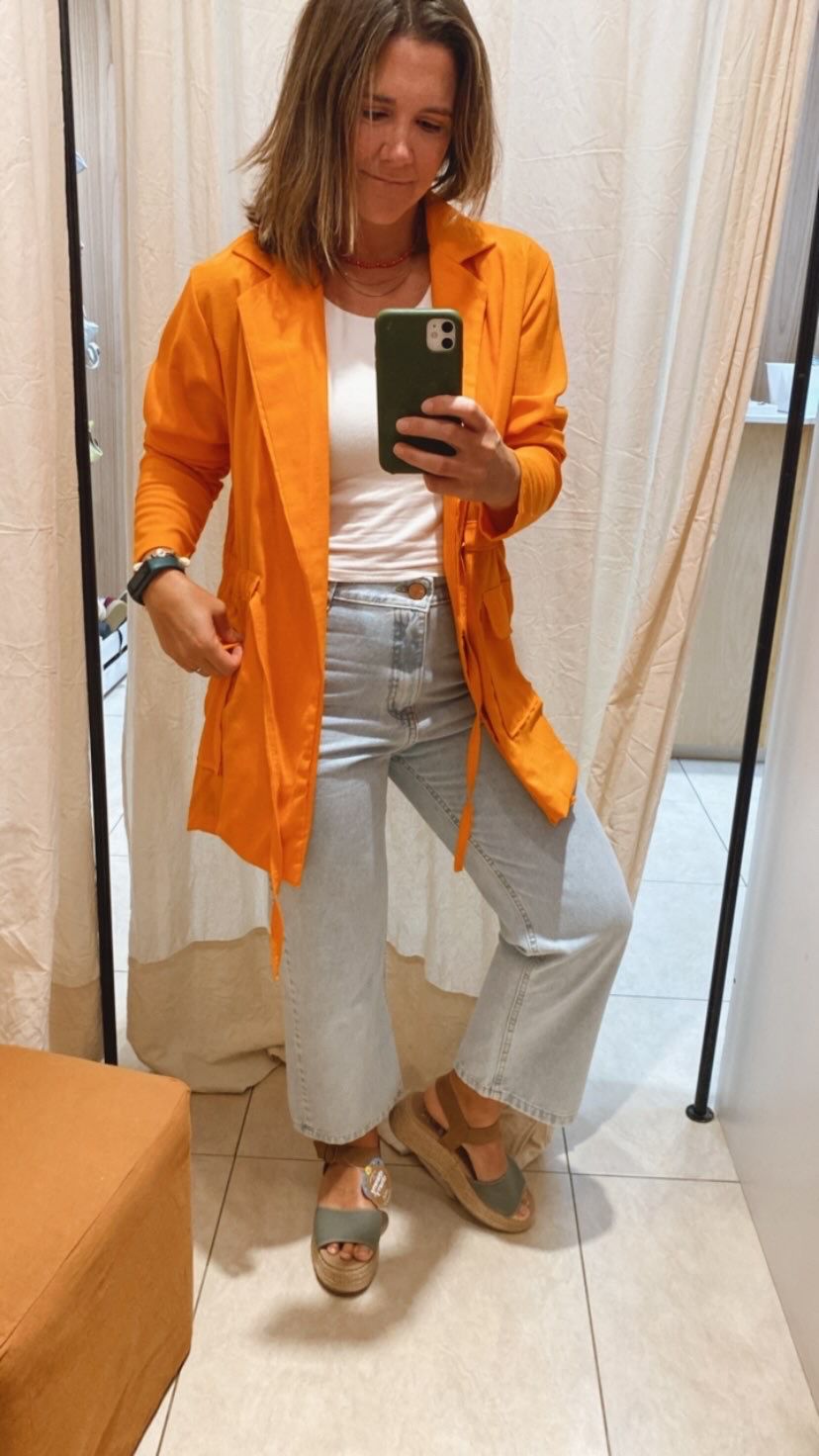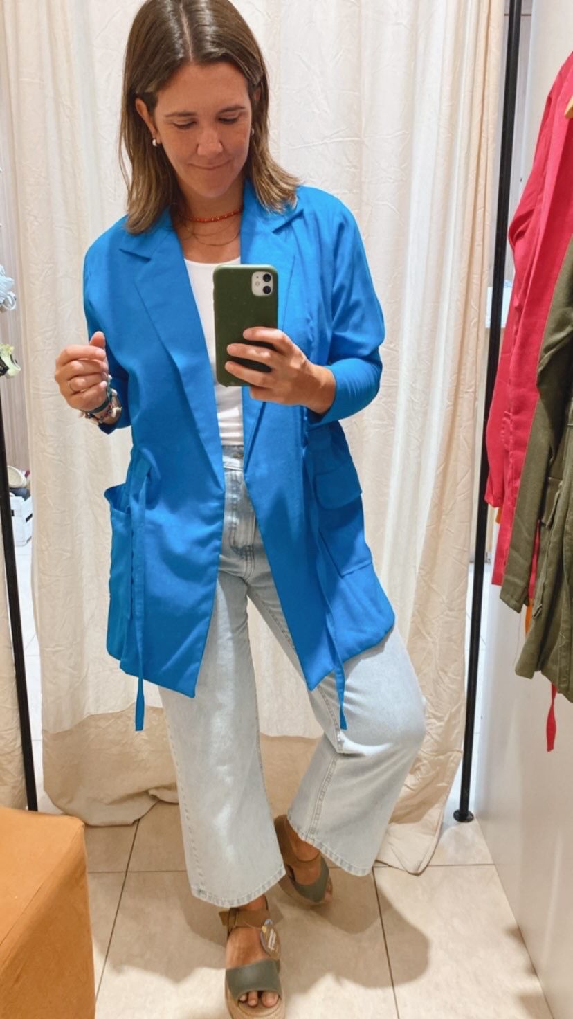 0Saco tipo blazer de lino duro con lazo en la cintura, ideal para noches frescas y medio tiempo, te levanta cualquier outfit!
