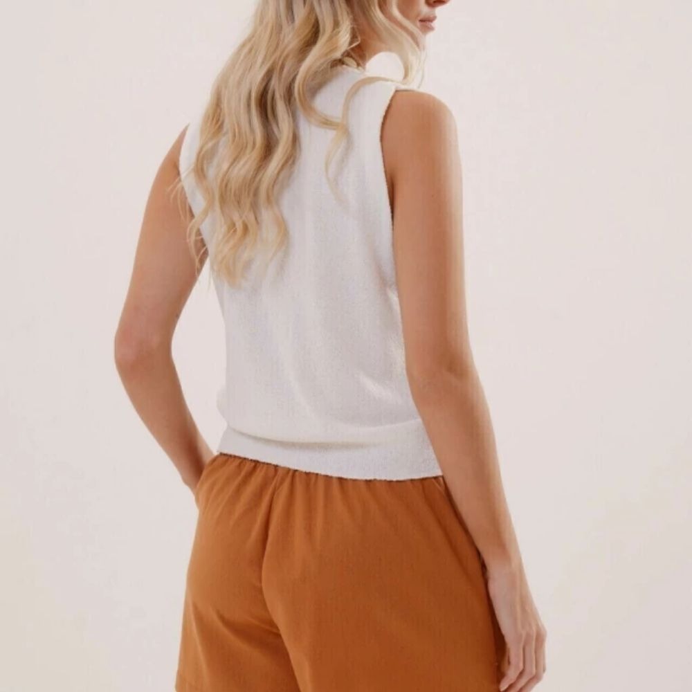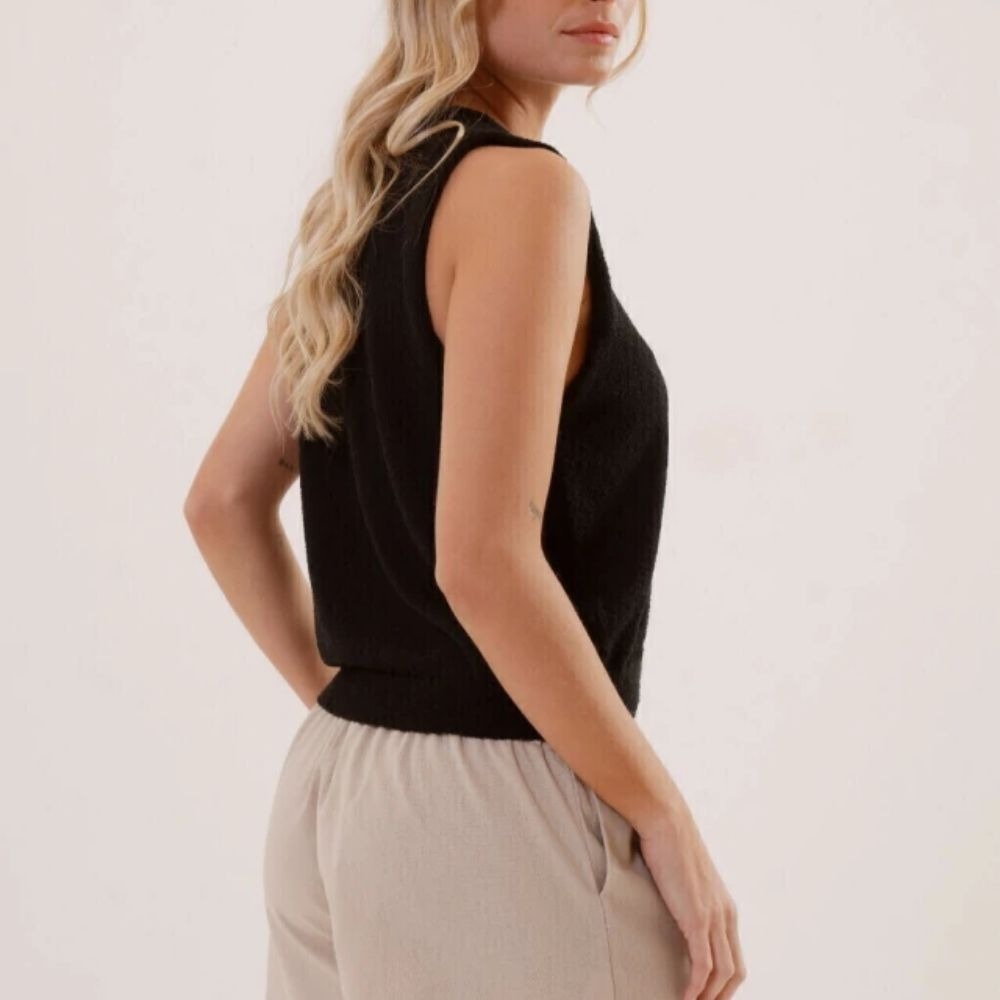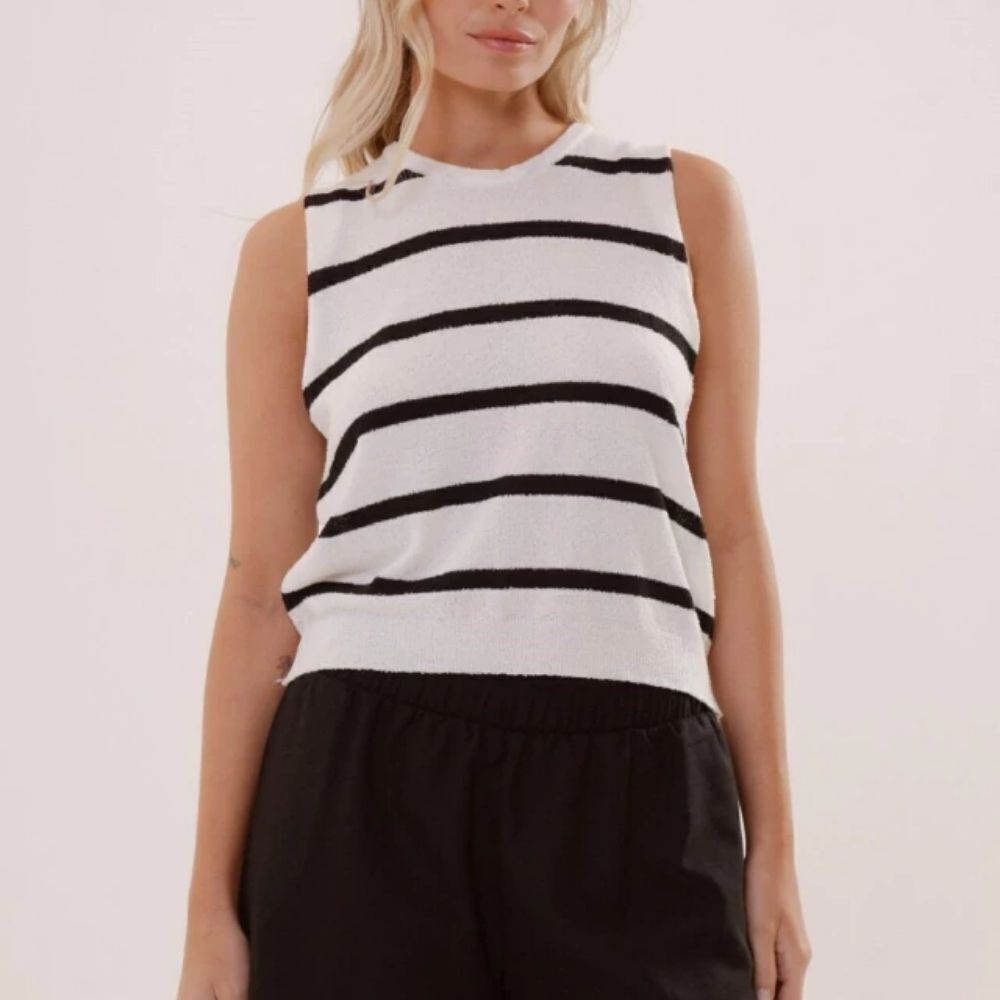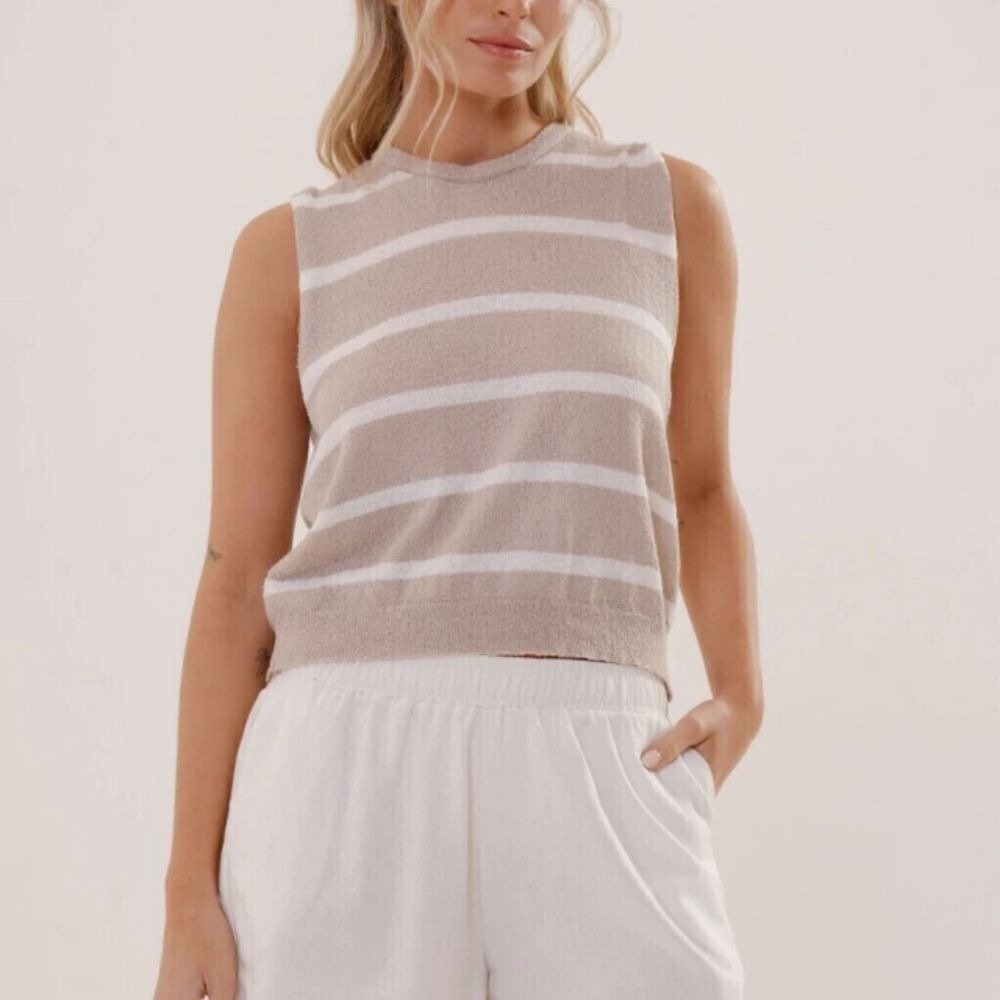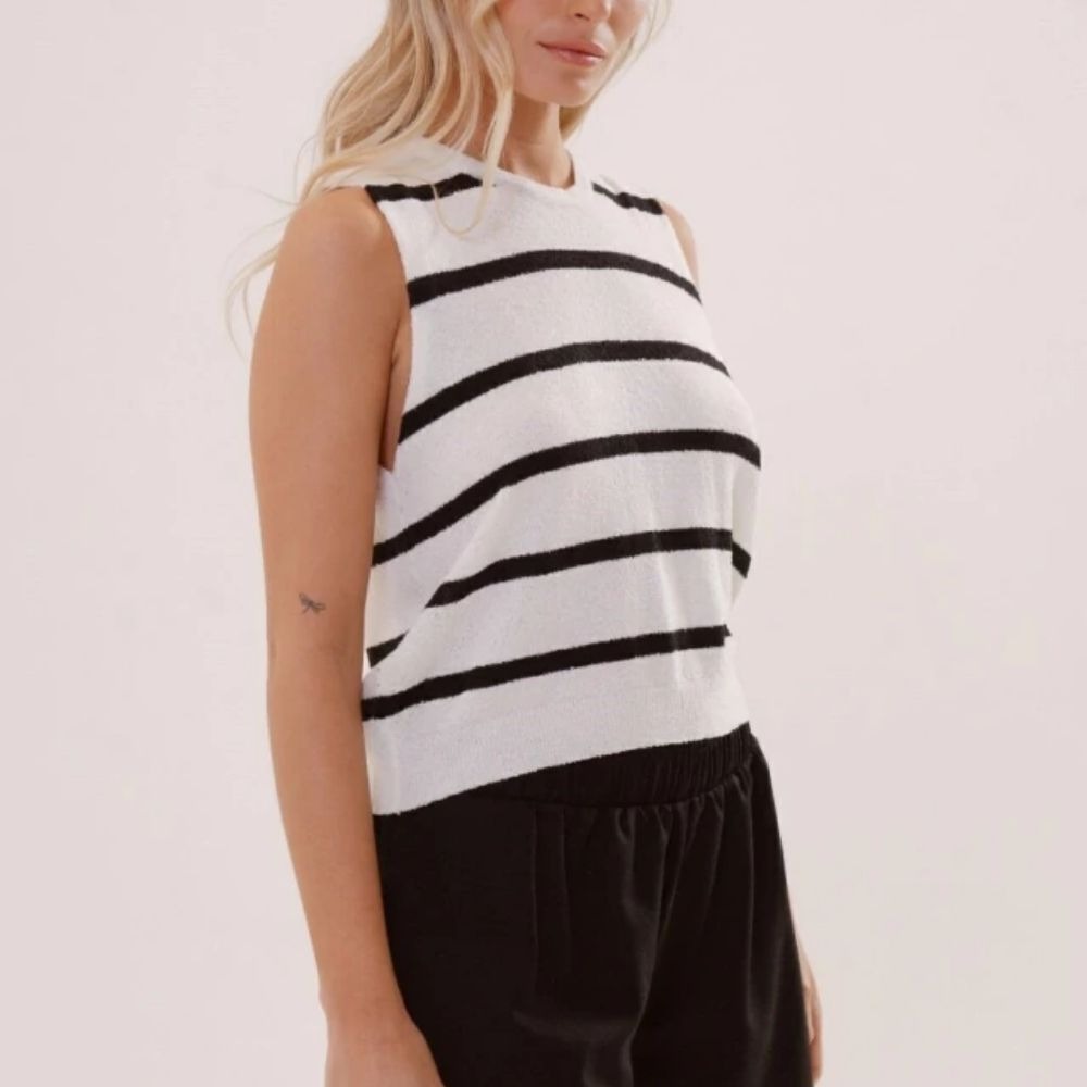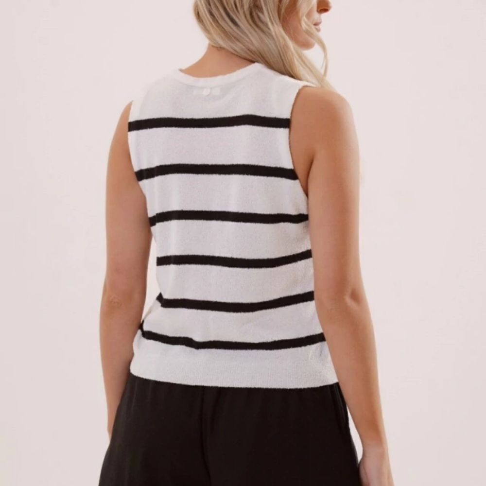 Una musculosa con rayas finitas,suelta, de escote redondo y muy comoda.
