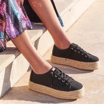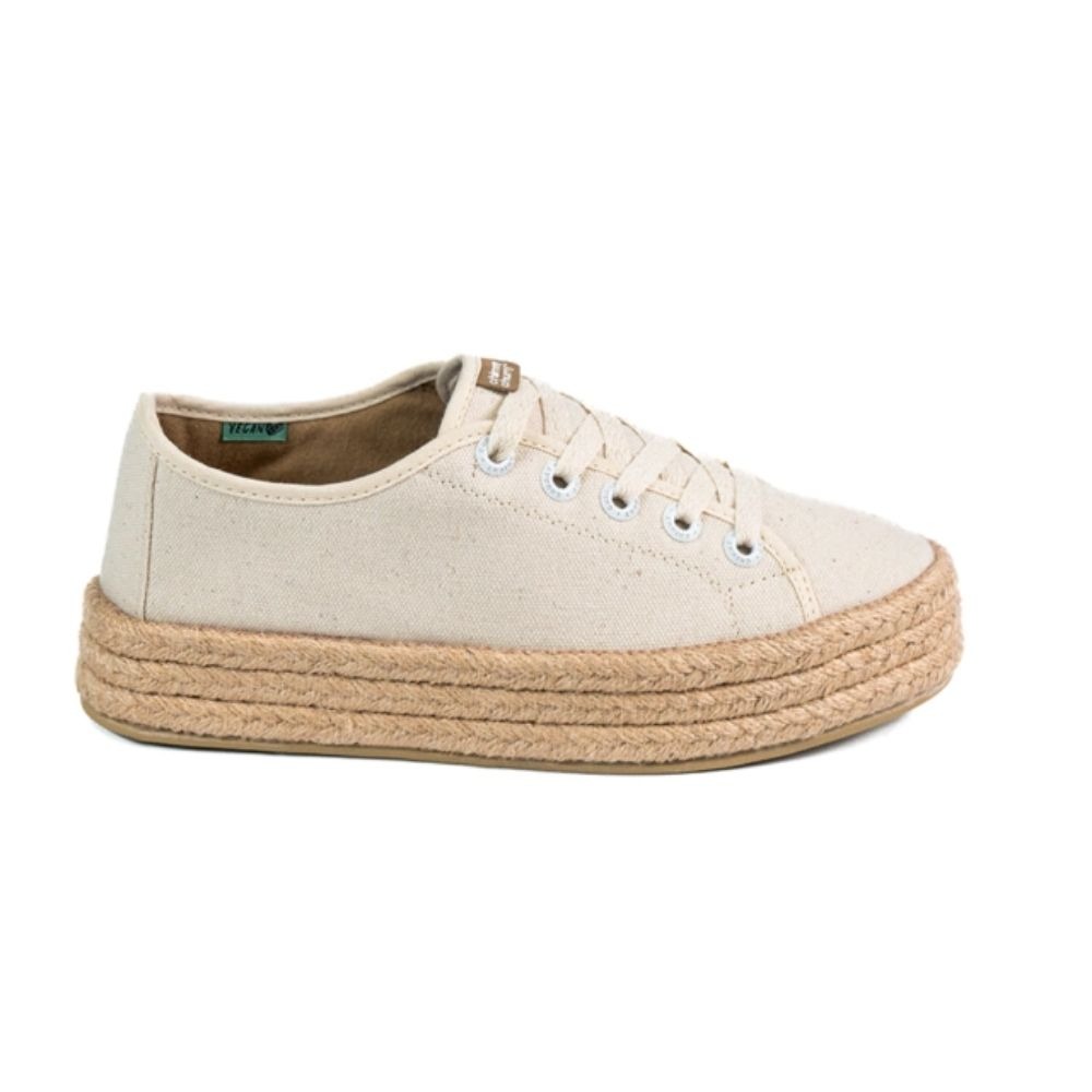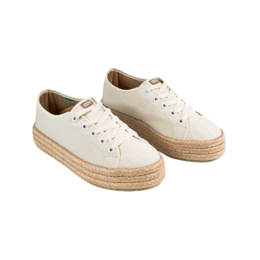 Clásica sneaker plataforma, en lona 100% algodón y suave forrería. La suela inyectada tiene 3 cm de altura con una terminación en yute trenzado de 3,5 cm que lo hace una propuesta canchera, ideal para combinar con todos tus looks.
