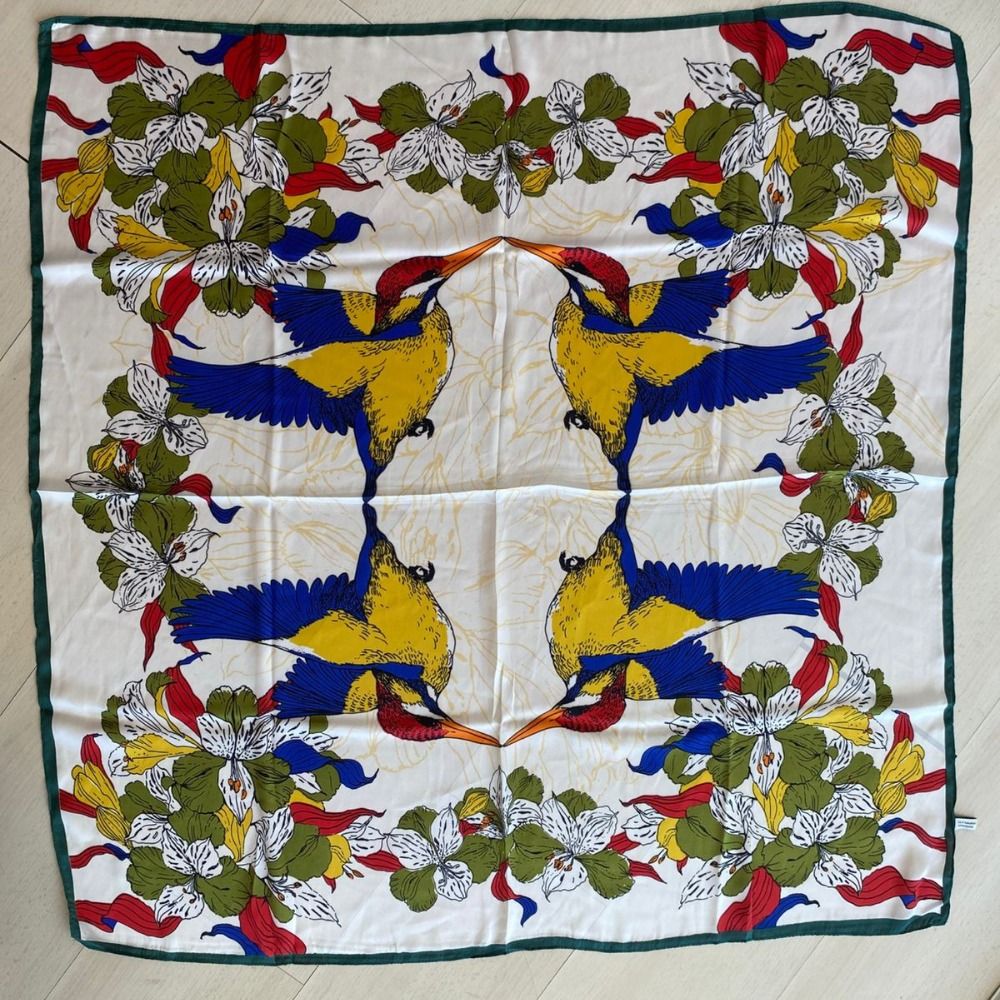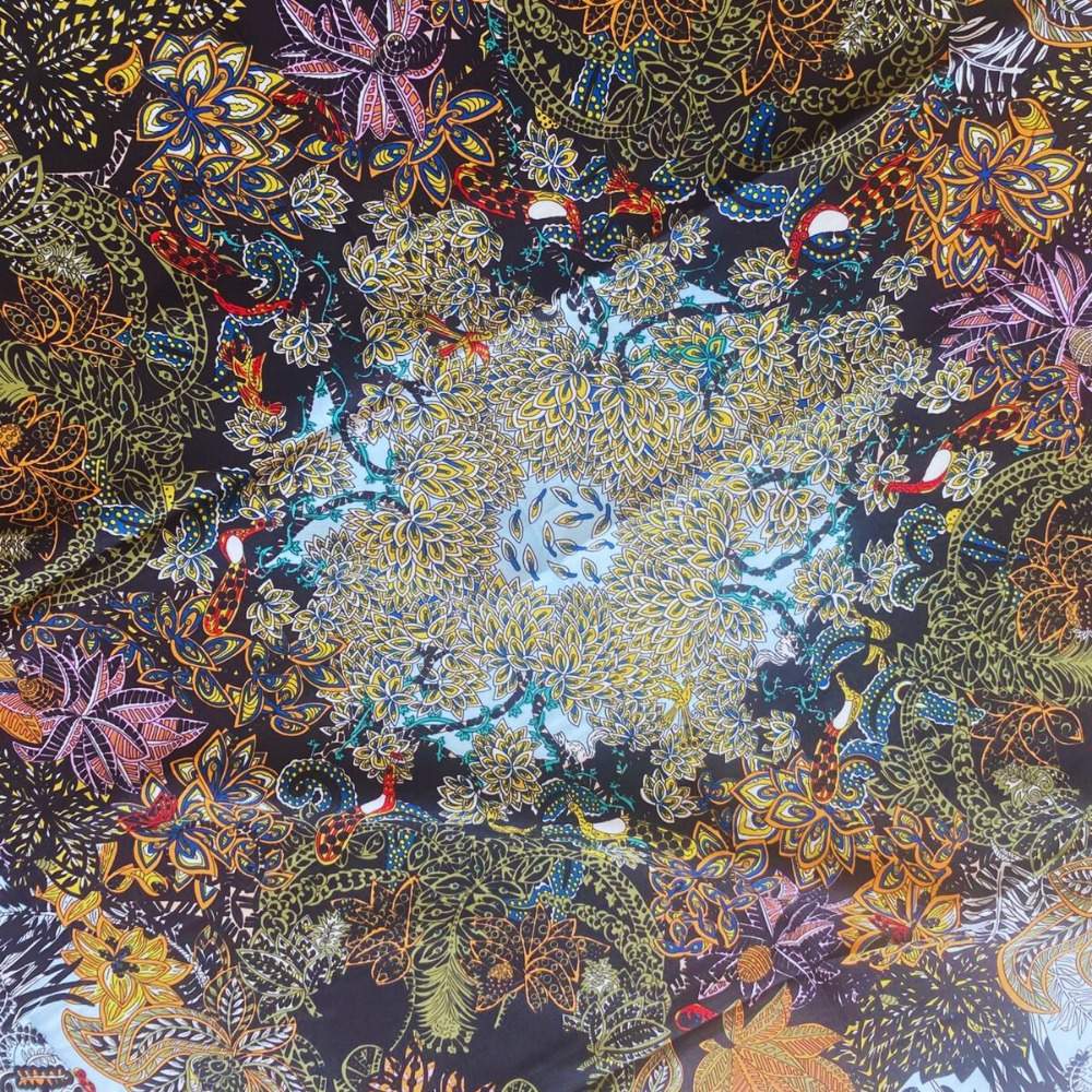 Pañuelo de 90×90 tela seda con estampa en ambos lados.